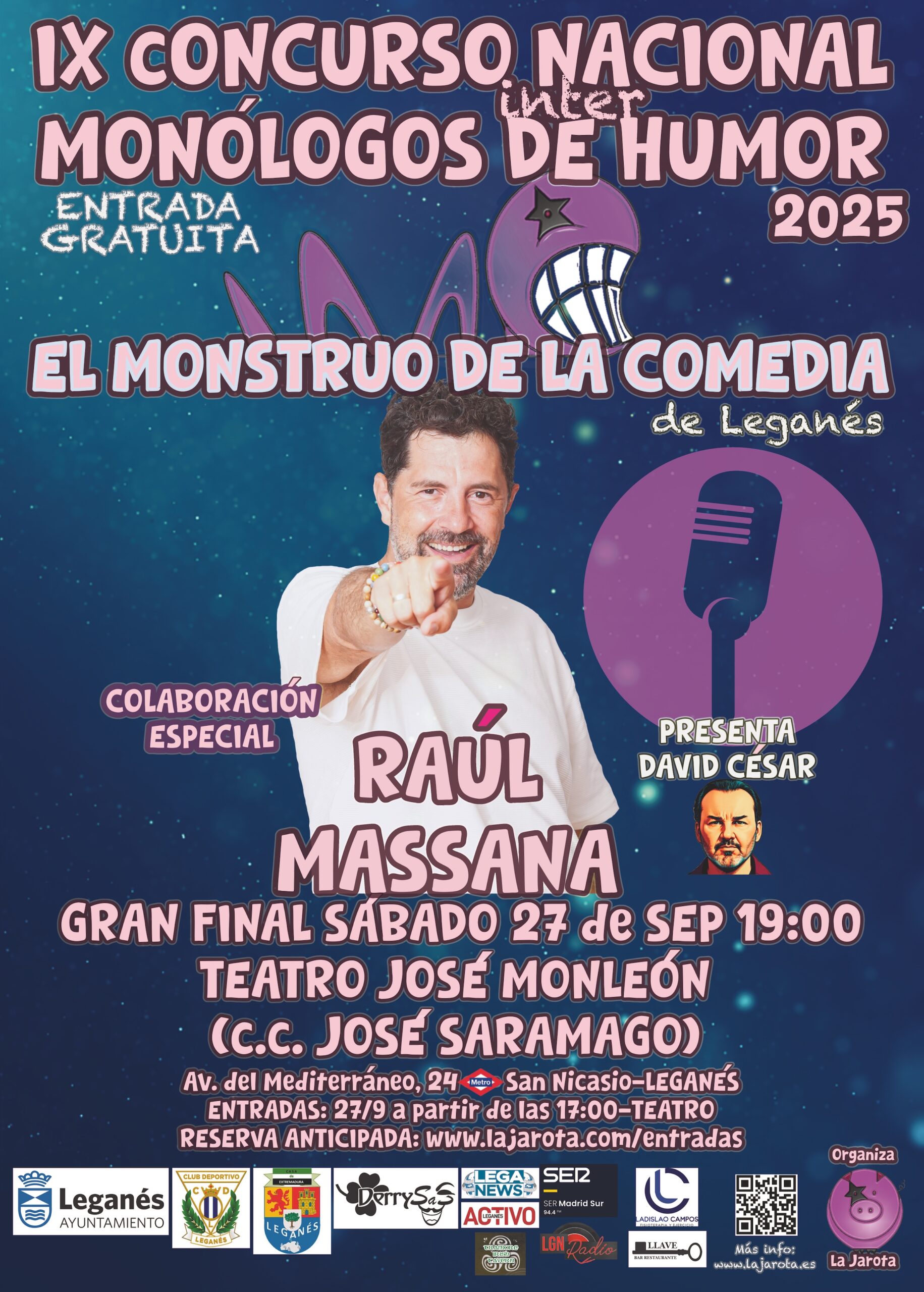 La cita será el sábado 27 de Septiembre, a las 19:00, en el Teatro José Monleón (C.C.Saramago), que está en Avda. del Mar Mediterráneo, 24 – 28918 Leganés.